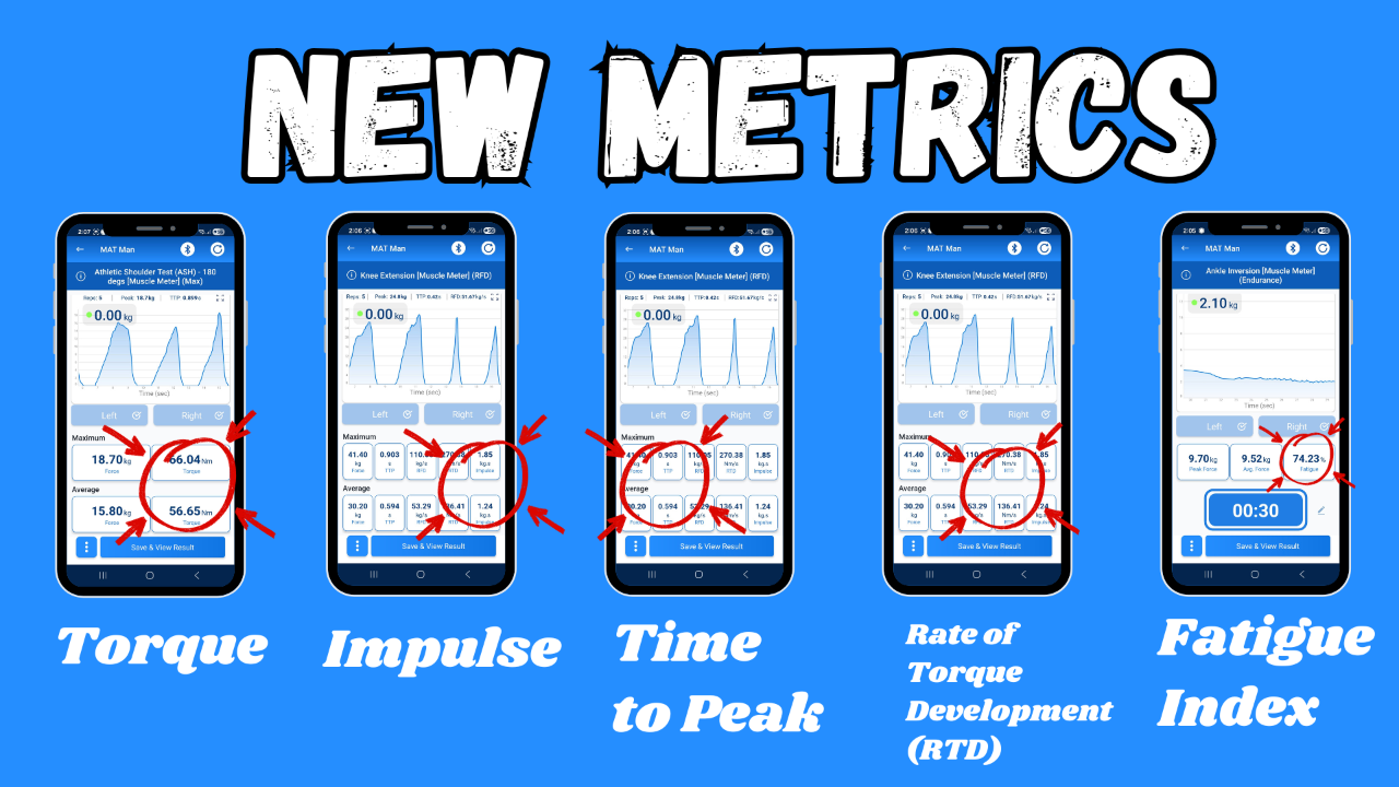 That’s where advanced force–time metrics — Impulse, Rate of Torque Development (RTD), Torque, Time to Peak, and Fatigue Index — provide insight that raw strength numbers alone cannot.