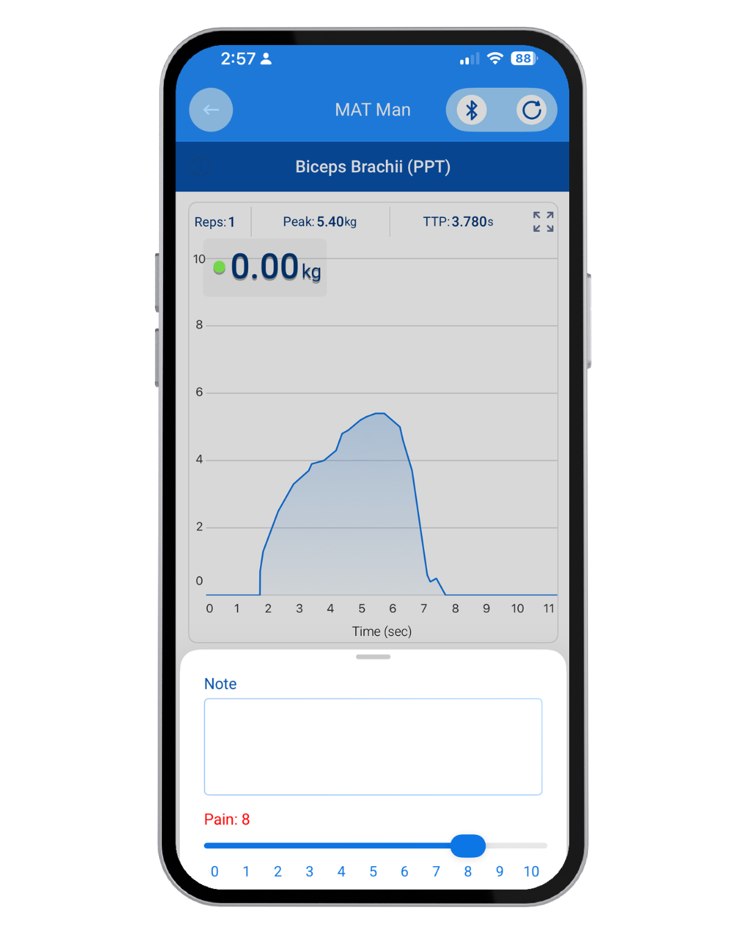PPT Mode measures the exact force where pain starts limiting movement, giving you a clear threshold value and live graph for safe, consistent testing. It’s the simplest way to quantify sensitivity, compare sides, and track desensitisation progress using real data — not vague pain ratings.