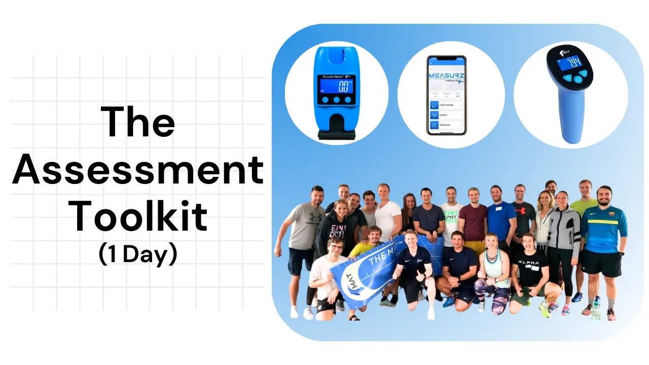 You’ll learn how to perform a wide range of assessments, build confidence to turn numbers into better rehab, training, and business decisions. With your included MAT, Muscle Meter, and 12 months Measurz access, you'll get the tools, systems, and ability to build a smarter, more data-driven business.Â