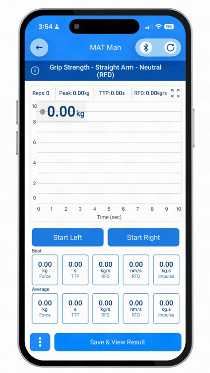 Measure rate of force development and time to peak using the Grippers live mode in our Measurz app.